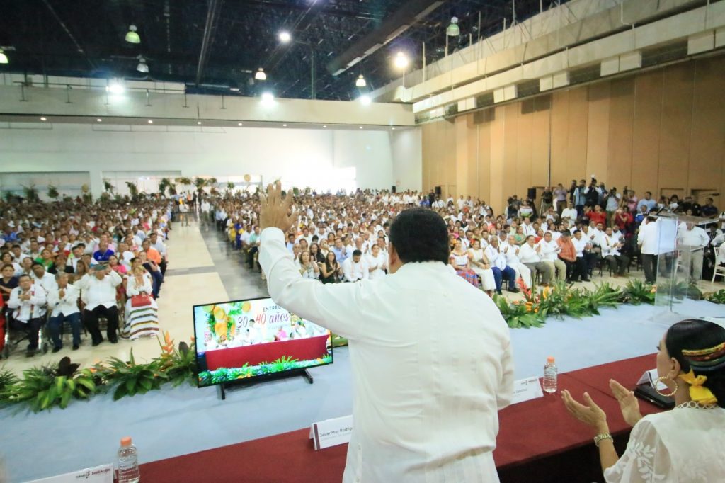 Este viernes, el Gobernador Javier May Rodríguez encabezó la ceremonia de entrega de 841 medallas por 30 y 40 años de servicio docente, así como de un reconocimiento especial a la maestra Zoila Estrella Graniel Sierra, por 45 años de labor en las aulas escolares.