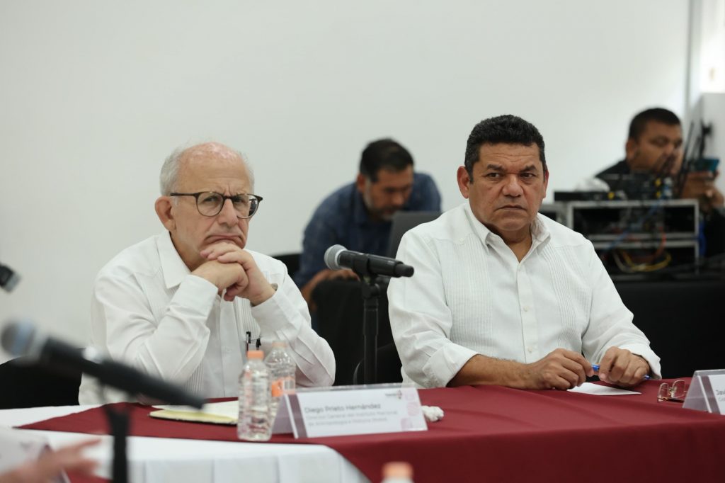 Este lunes, en el Centro Cultural Quinta Grijalva, el Gobernador Javier May Rodríguez sostuvo una reunión de trabajo con el director general del Instituto Nacional de Antropología e Historia (INAH), Diego Prieto Hernández y personal de TEN Arquitectos, quienes expusieron los pormenores del proyecto de edificación del Museo Nacional Olmeca, el cual busca exaltar la importancia y legado de la ‘cultura madre’.