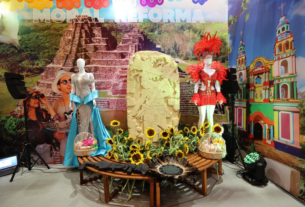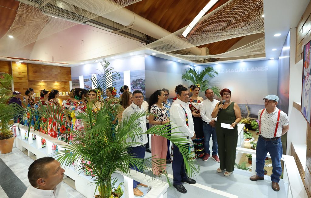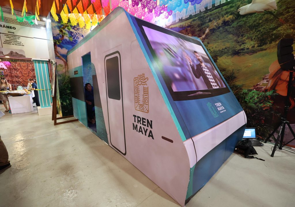 El stand de Balancán destacó por su enfoque turístico, al presentar una réplica de una cabina del Tren Maya y una exhibición visual de sus principales atractivos naturales, como el río San Pedro Mártir, la zona arqueológica de Moral-Reforma, la Iglesia de Colores, las Cascadas de Reforma, El Popalillo y Los Girasoles.