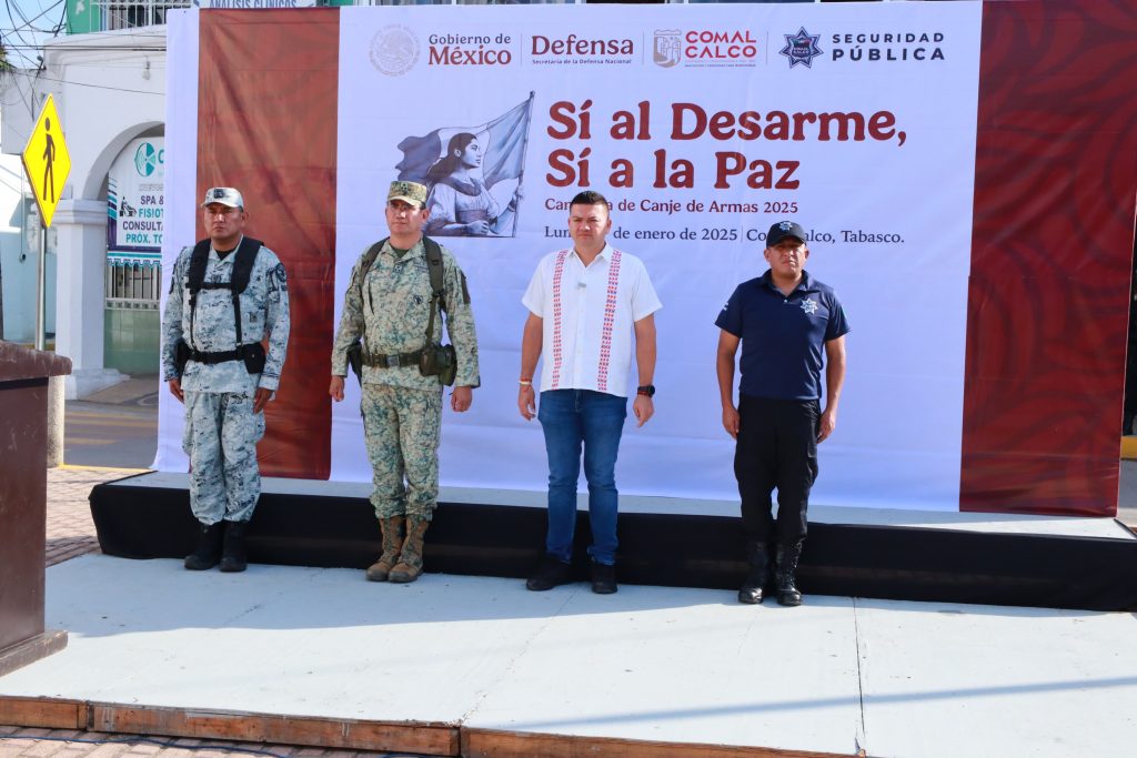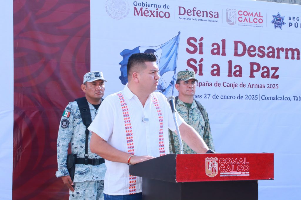 Durante el evento, realizado en el Parque Central, el presidente municipal destacó que el objetivo principal es evitar tragedias asociadas al uso de armas de fuego, atender las causas de la violencia y promover un entorno más seguro para la ciudadanía. En el acto estuvieron presentes Juan Octavio Ortiz Marín, comandante del 57 Batallón de Infantería; Manuel de Jesús Díaz de la Cruz, comandante de la Guardia Nacional en Comalcalco; y Raúl Velasco Valencia, director de Seguridad Pública Municipal.
