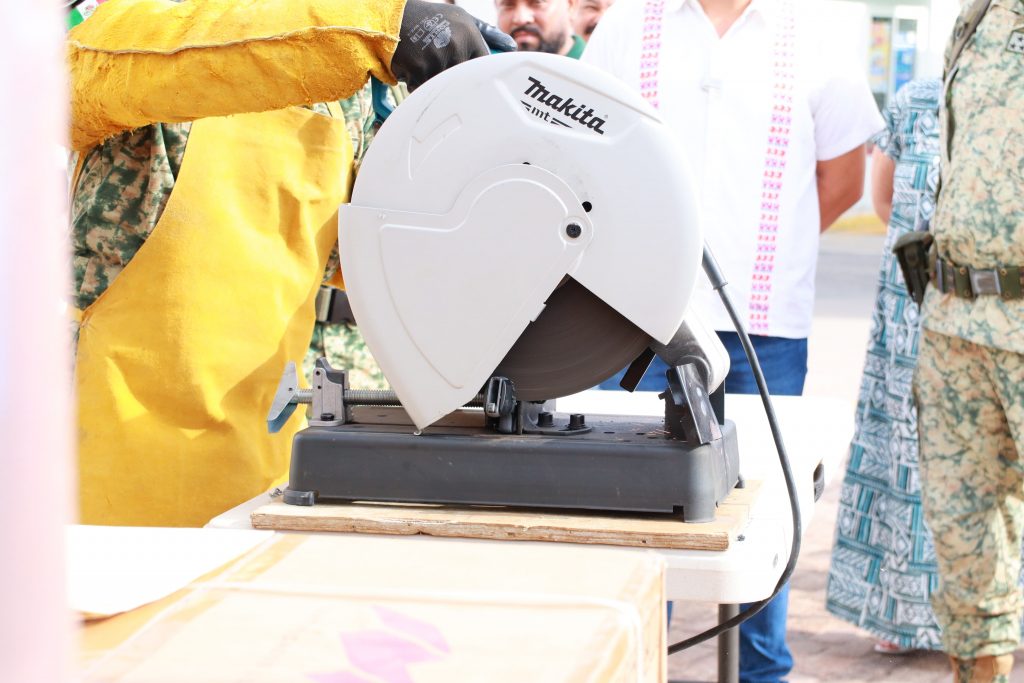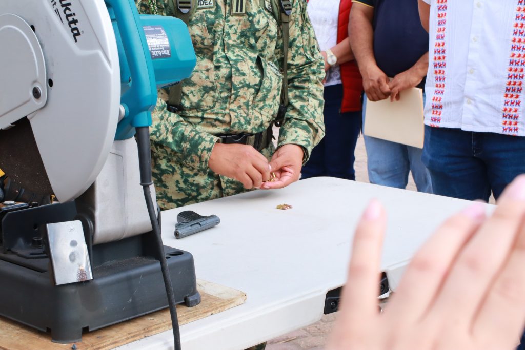 “Queremos que las nuevas generaciones vivan alejadas de las armas de fuego y más cerca de los libros y la educación”, expresó el alcalde, mientras un joven entregaba un arma que fue destruida de manera simbólica frente a los asistentes.