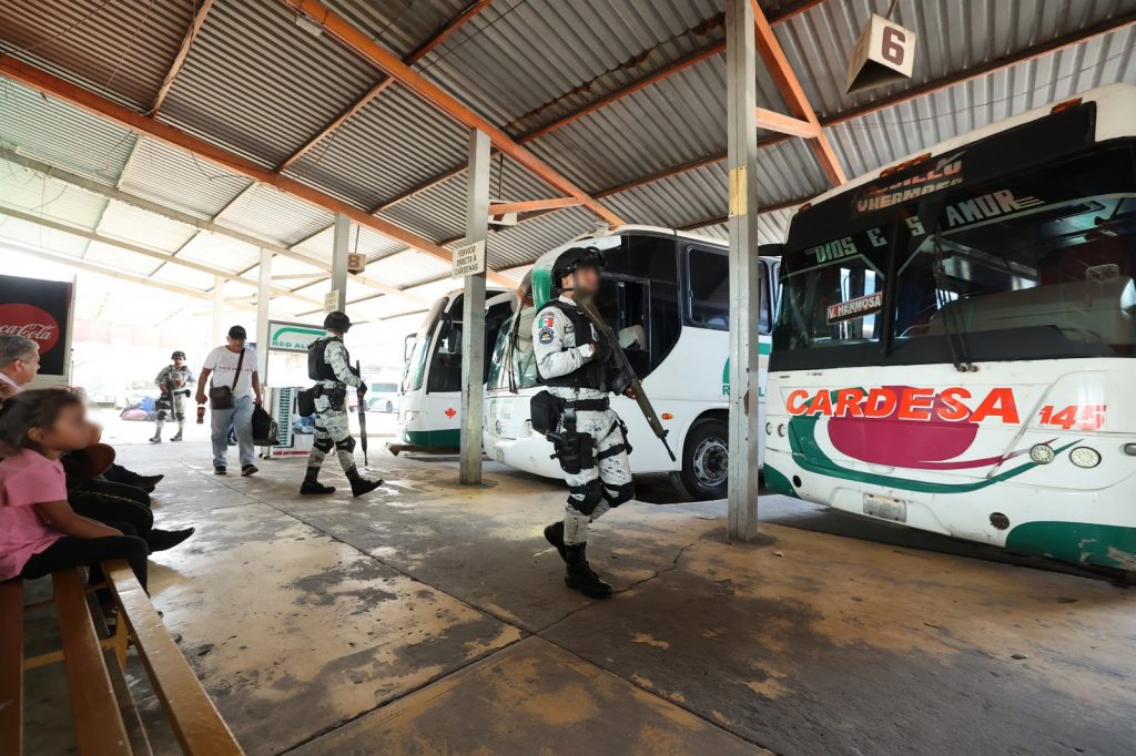 La estrategia de seguridad incluye la participación de cerca de mil elementos de la GN, quienes realizan patrullajes con vehículos oficiales, seguridad en el transporte con revisión a pasajeros y proximidad social en parques, plazas comerciales, mercados y paradas de transporte. “Anteriormente había mucho relajo, pero ahora está tranquilo, gracias a Dios, en parte por la presencia de los elementos de seguridad”, refirió TV ‘Lacho’, checador en la Terminal de Autobuses de Cárdenas.