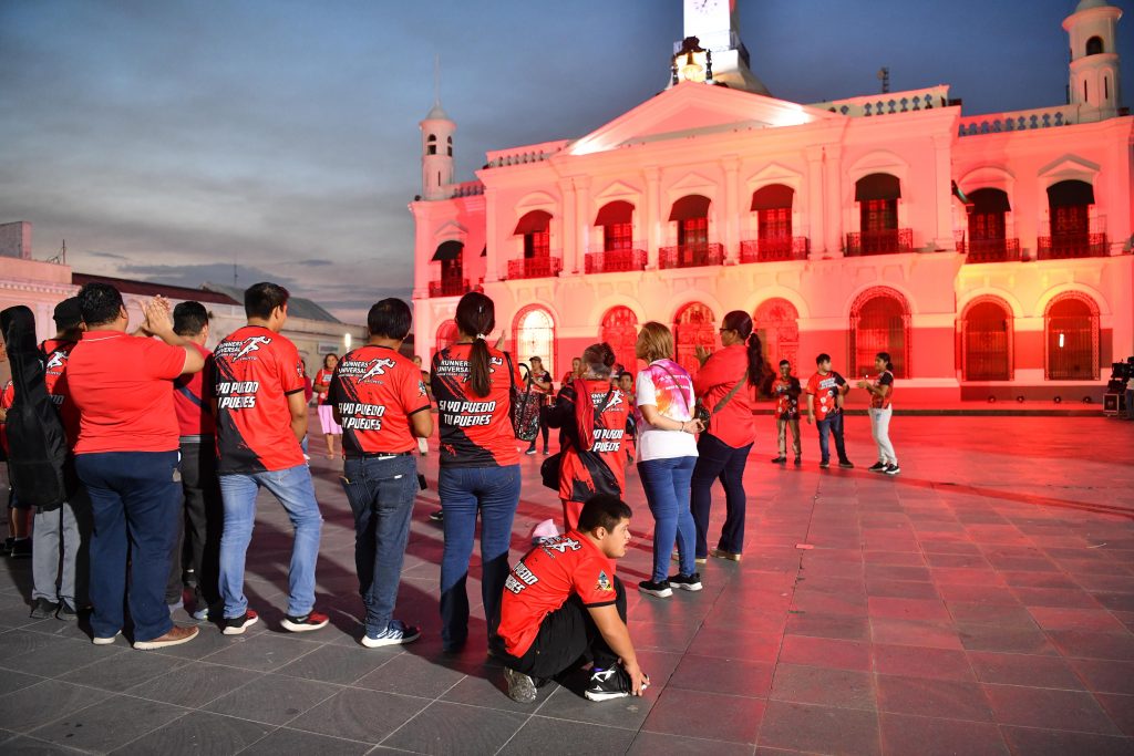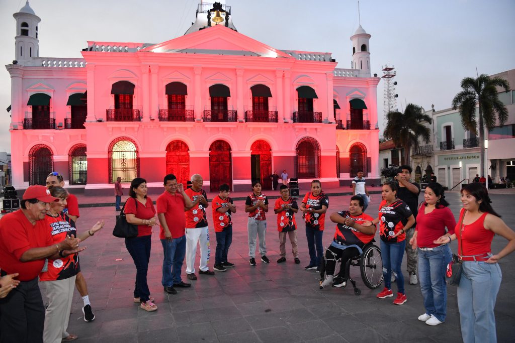Teniendo como fondo el Palacio de Gobierno que se iluminó de color rojo, el director del programa de Olimpiadas Special Olympics México, capítulo Tabasco, Juan Miguel Bautista Juárez, explicó que la conmemoración se realiza de manera simultánea en más de 200 países, y tiene la ardua tarea de incluir a todas las personas a la sociedad, y no solamente a quienes tienen alguna discapacidad, sino a todas en general.