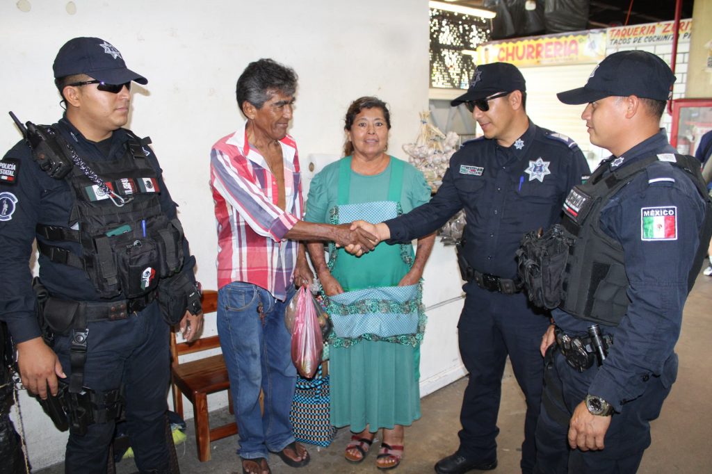 En el mercado, los elementos de la Policía Estatal firmaron bitácoras, y sostuvieron un diálogo directo con locatarias y locatarios, brindando información sobre prevención del delito, y refrendando el compromiso de seguir en contacto y cercanía.