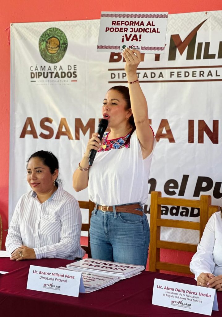 La diputada federal Beatriz Milland Pérez, en la R/a Chilapa, en el Centro Integrador Boca de Chilapa del municipio de Centla, realizó una asamblea informativa para dar a conocer los avances legislativos alcanzados durante 2024.