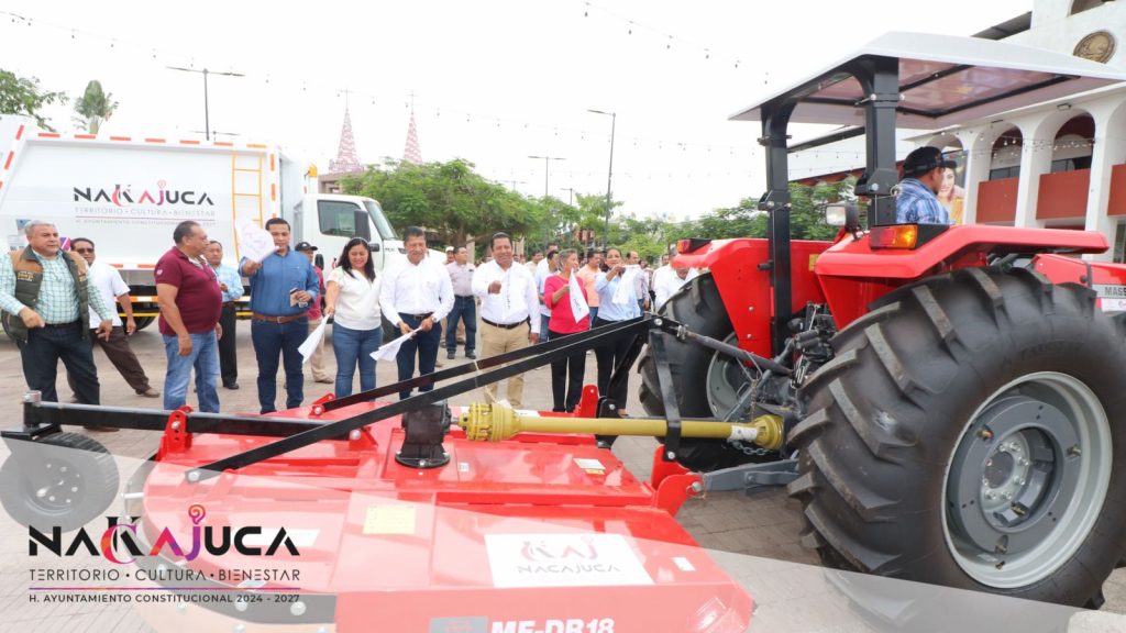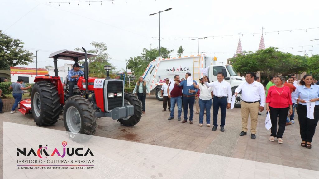 A fin de mejorar la calidad de vida de los nacajuquenses, el Presidente Municipal Roberto Ocaña Leyva realizó la entrega de dos camiones recolectores de basura que entrarán en operación para mejorar las condiciones de vida de los habitantes del municipio, ya que su funcionamiento fortalece la recolección de desechos sólidos, además también dio banderazo de salida a dos tractores que servirán para apoyo a trabajadores del campo.