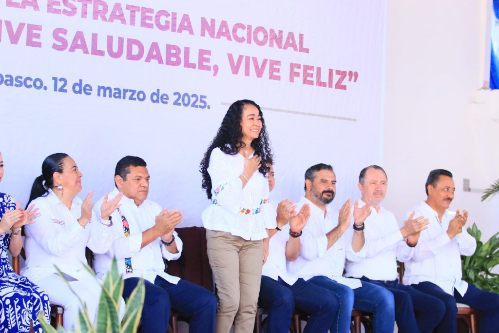 Posteriormente, la Profesora Aurora Raleigh participó junto al gobernador Javier May Rodríguez en la puesta en marcha en la entidad de la Estrategia Nacional de Vida Saludable: “Vive Saludable, Vive Feliz”, desde la escuela primaria Carlos A. Madrazo,