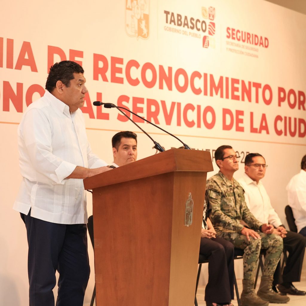“Este es un paso histórico que reconoce la labor de quienes velan por la paz y seguridad de las y los tabasqueños. Aquí estoy y seguiré estando junto a ustedes, coordinados con las fuerzas federales y municipales, para devolver la paz a nuestro querido Tabasco”, subrayó el Gobernador.