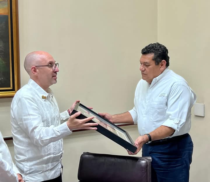 El presidente de CONCANACO SERVYTUR, Octavio de la Torre de Stéffano, entregó el galardón al gobernador de Tabasco, Javier May Rodríguez, en un acto que resaltó el esfuerzo de los empresarios y comerciantes tabasqueños por impulsar el crecimiento económico y fortalecer la identidad nacional.