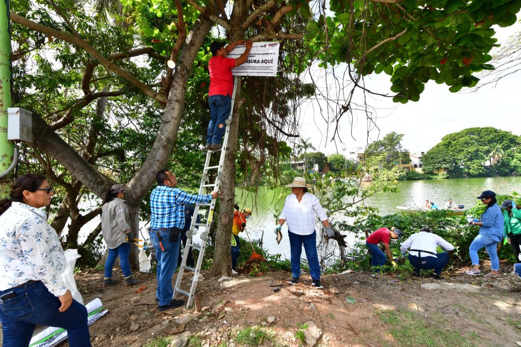 La secretaria de Medio Ambiente y Desarrollo Sostenible (SEMADES), Sheila Guadalupe Cadena Nieto y el director local de la Comisión Nacional del Agua (Conagua) Tabasco, Luis Antonio Cabrera, encabezaron el inicio de la jornada de limpieza, en un tramo de 250 metros a la altura de la calle Macayos en la colonia El Recreo de Villahermosa, en cuyo marco hicieron un llamado a los residentes de las márgenes a cuidar este cuerpo lagunar, evitando descargar aguas residuales y el relleno del mismo.