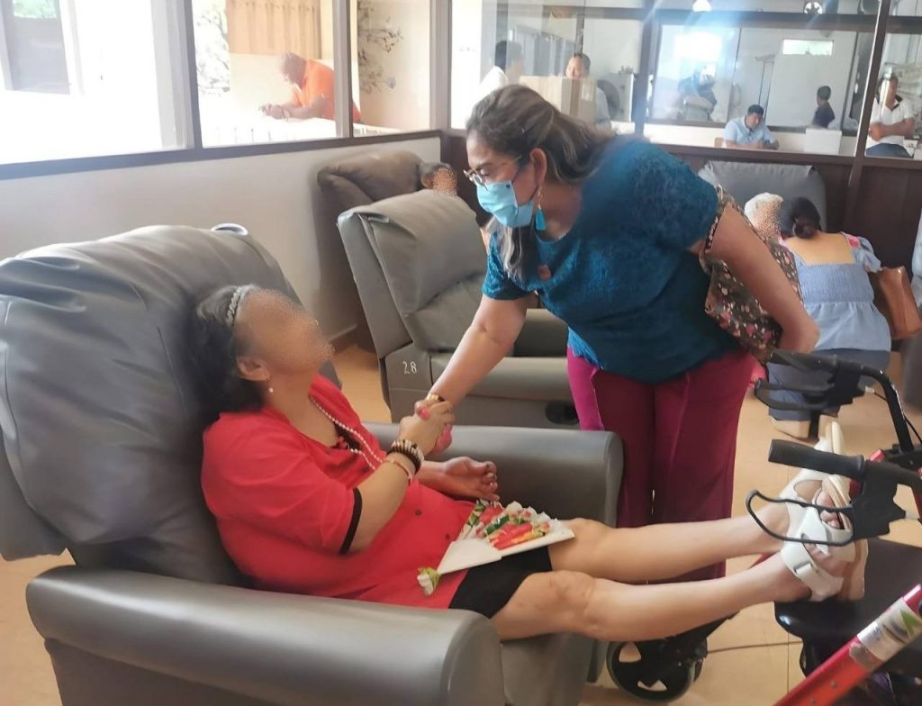 La Presidenta Honoraria del Sistema DIF Tabasco, Aurora Raleigh de la Cruz acompañó a las damas voluntarias del Colegio de Bachilleres de Tabasco que encabeza Olga Beatriz Jiménez González durante una visita a la residencia de ancianos “La casa del Árbol”.